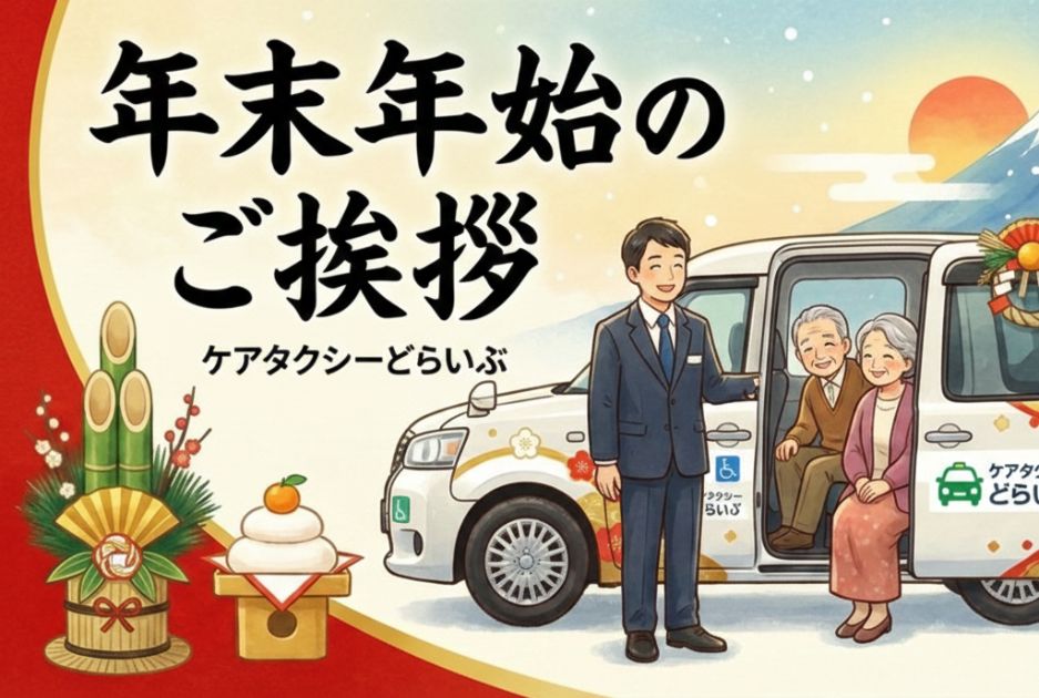 今年一年のご支援に深く感謝申し上げます。来年も「安心」「安全」「信頼」をモットーに、看護師同乗のケアタクシーとして地域の皆さまの移動を支えてまいります。良い年末年始をお迎えください。今後ともケアタクシーどらいぶをよろしくお願いいたします。