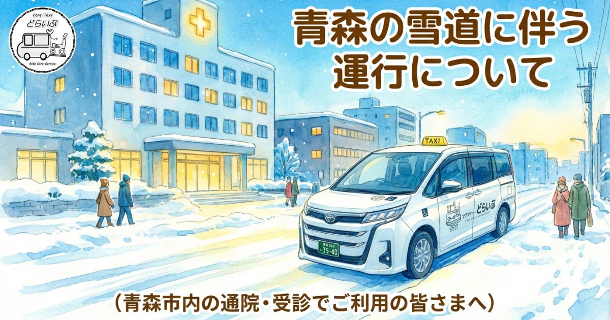 いつもケアタクシーどらいぶをご利用いただき、ありがとうございます。看護師同乗のケアタクシーとして、青森・青森市エリアで通院や受診の送迎を日々担当しております。本日は冬季の道路状況に伴う運行対応について、青森の皆さまへ重要なお知らせです。